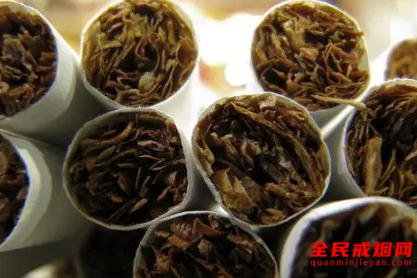 香烟的烟丝是经过了长时间的醇化处理,以及复杂的加工制作而成的,成品的质感油润水滑,颜色比较暗淡,而假烟的烟丝,一般使用双氧水浸泡,或者是硫磺熏制而成,表面比较粗糙。